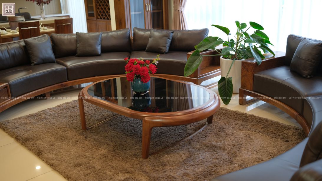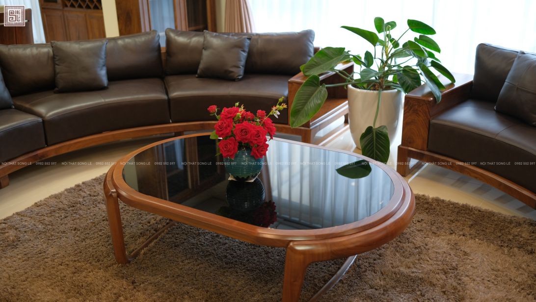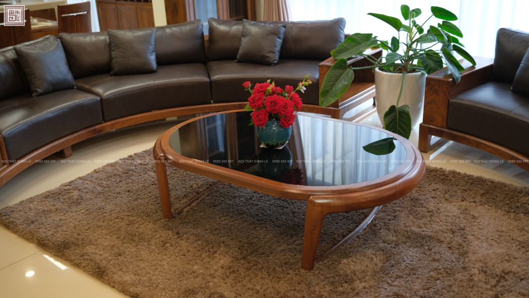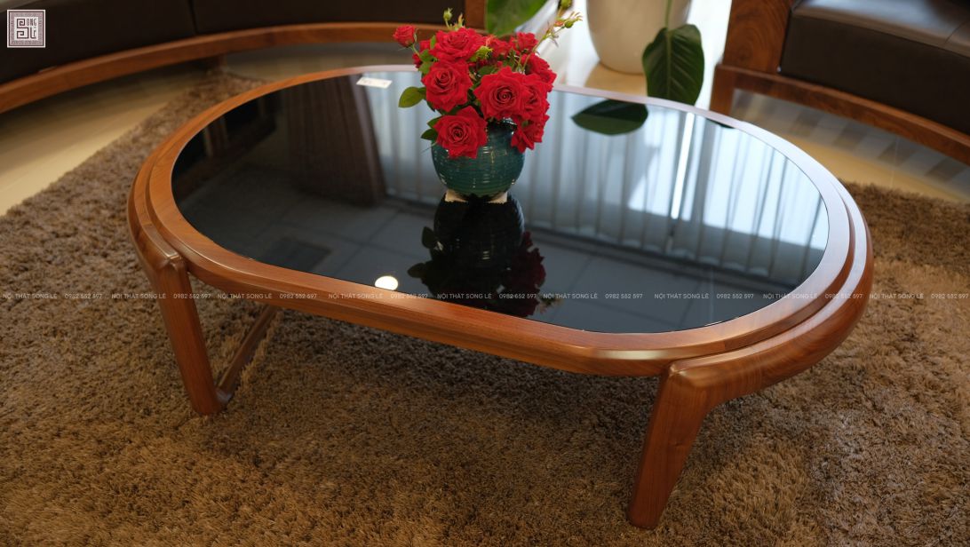 Không chỉ là món nội thất để tiếp khách, bàn trà bầu dục mặt kính gỗ óc chó còn mang nhiều giá trị: