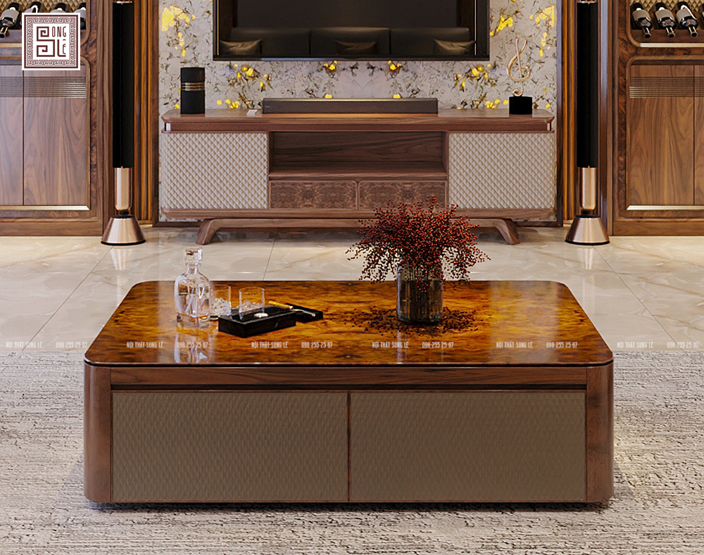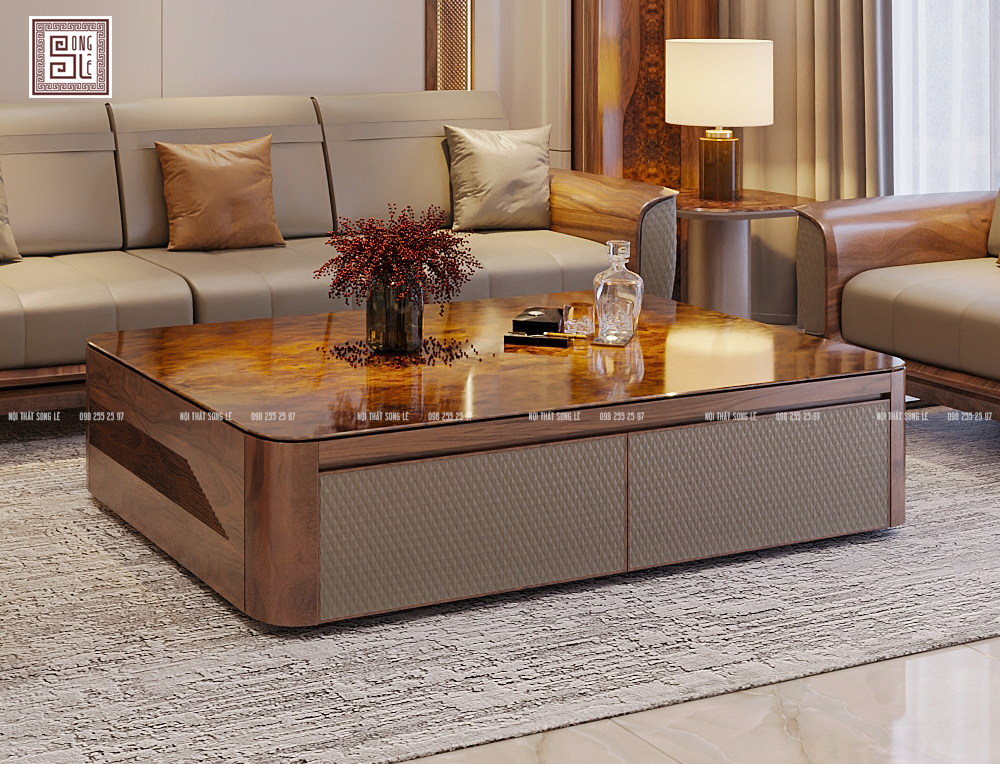 Ứng dụng của bàn trà gỗ óc chó này phù hợp cho không gian: Phòng khách biệt thự, villa sang trọng. Chung cư cao cấp, Penthouse theo phong cách Modern Luxury. Văn phòng tiếp khách của các chủ doanh nghiệp lớn.