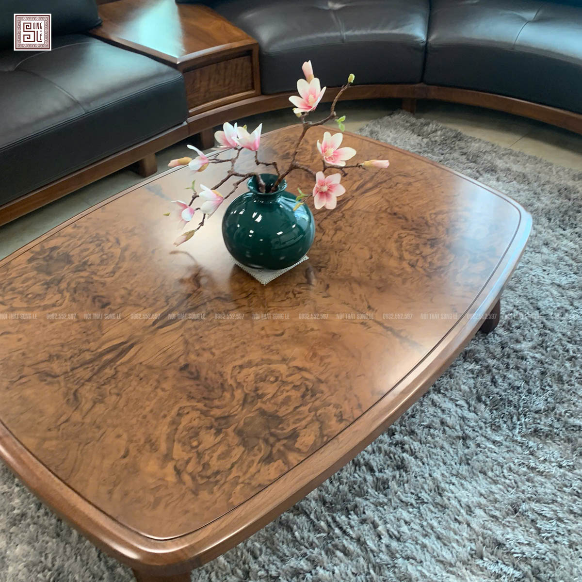 Bàn trà mặt nu gỗ óc chó không chỉ đơn thuần là một món đồ nội thất, mà còn thể hiện gu thẩm mỹ và đẳng cấp của gia chủ. Với màu nâu trầm ấm, kết hợp cùng những đường vân xoáy mềm mại, sản phẩm dễ dàng trở thành điểm nhấn sang trọng trong phòng khách hiện đại.