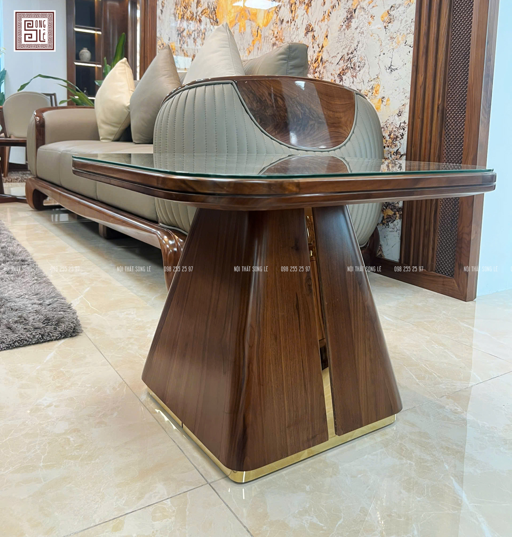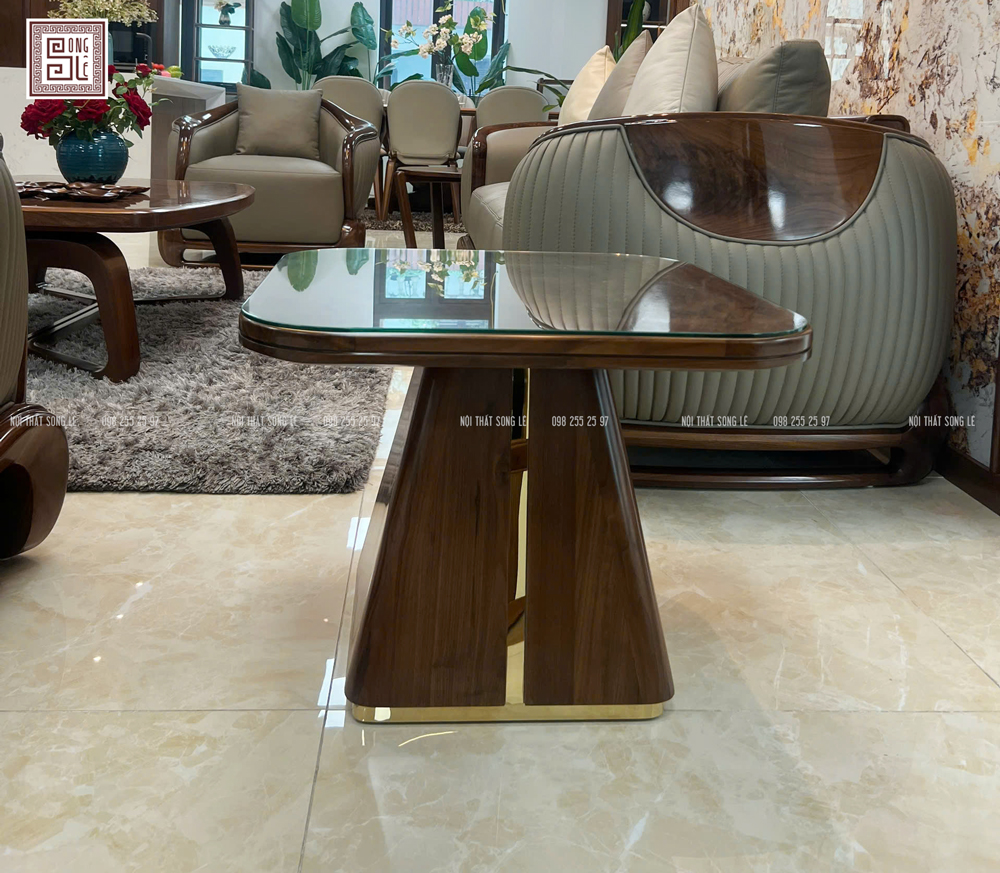 Bàn đôn trang trí luôn đi đôi cùng bàn trà và sofa gỗ óc chó để tạo nên một hệ sinh thái nội thất đồng bộ, giúp không gian trở nên đẳng cấp và chỉn chu. Ngoài tác vụ trang trí, đôn còn được ứng dụng như một chiếc bàn phụ để sách, tách trà hoặc điện thoại khi bạn nghỉ ngơi trên sofa.