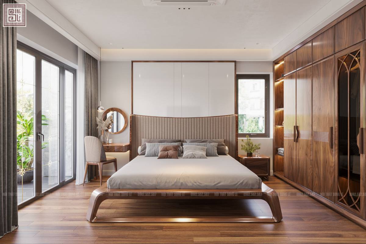 Giường ngủ gỗ óc chó đuôi bằng thiết kế theo phong cách hiện đại