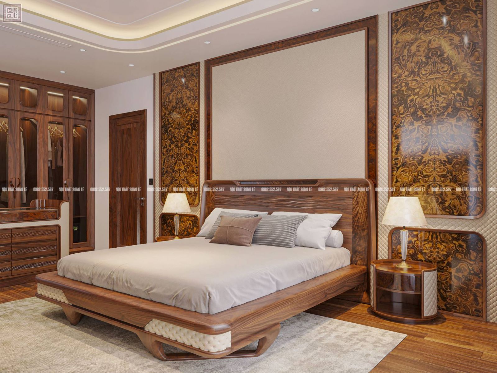 Giường ngủ bằng gỗ óc chó đẹp độc đáo với phong cách hiện đại
