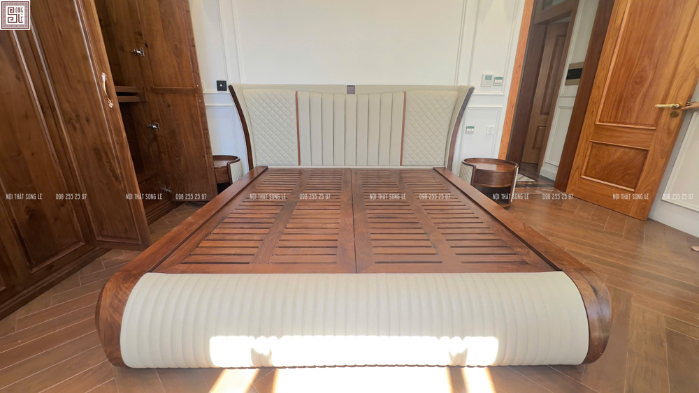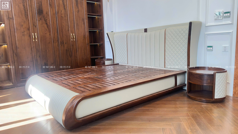 Nếu bạn đang tìm kiếm một chiếc giường không chỉ bền mà còn phải thật sự khác biệt, đây chính là câu trả lời. Điều khiến chiếc giường ngủ gỗ óc chó SLGN066 này trở nên đặc biệt không chỉ là chất liệu mà còn là sự tinh tế trong từng đường nét. Không bị cứng nhắc, thô kệch, mà được thiết kế với khung gỗ chắc chắn nhưng các góc cạnh, chân giường đều được bo cong mềm mại. Sự bo cong này vừa làm tăng tính thẩm mỹ, vừa là một chi tiết an toàn cực kỳ quan trọng, giúp tránh va chạm, rất phù hợp với thói quen sinh hoạt của người lớn tuổi.