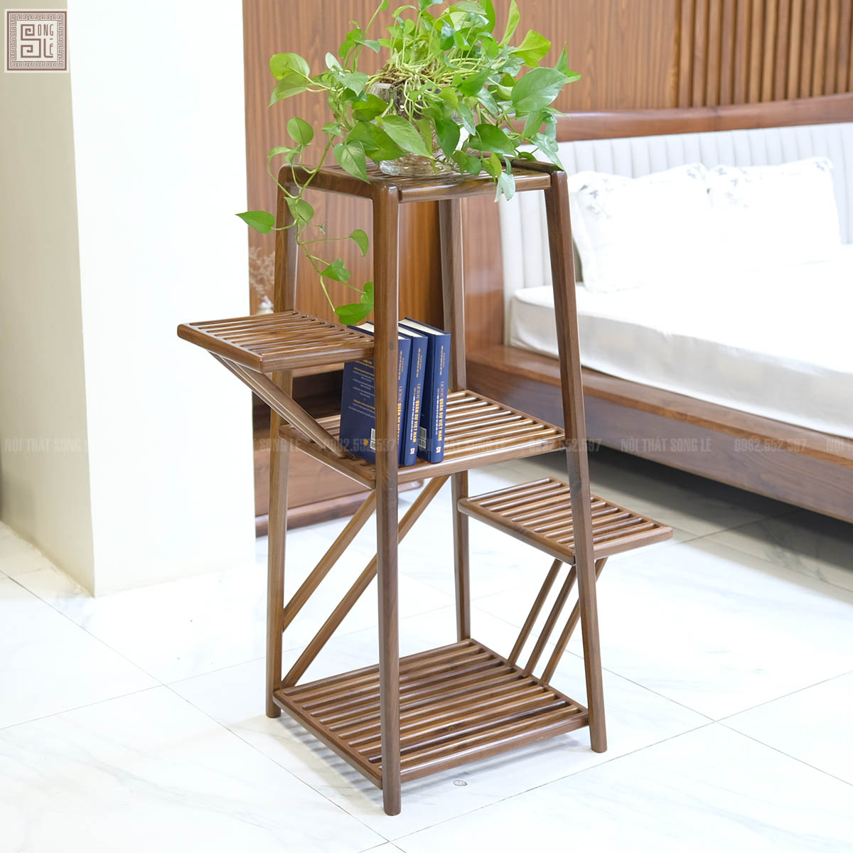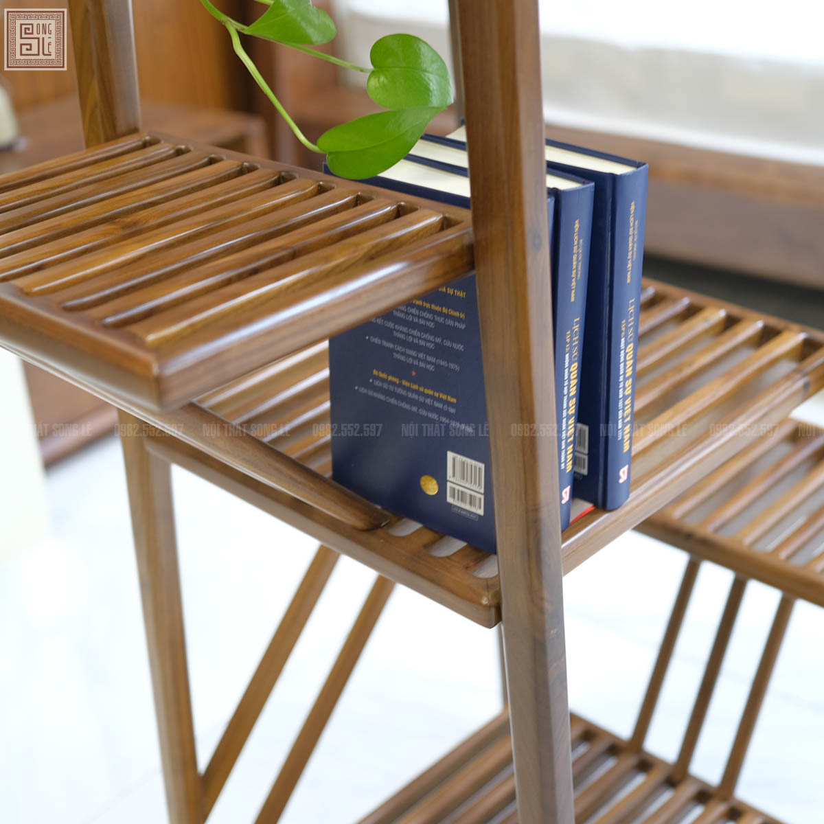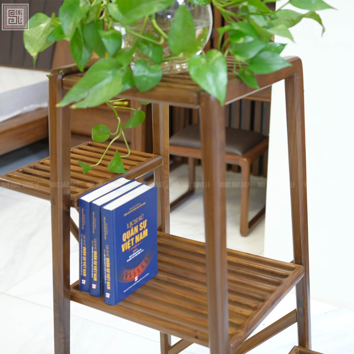 Không chỉ dừng lại ở công năng, kệ nan trang trí 3 tầng gỗ óc chó còn góp phần nâng cao giá trị thẩm mỹ cho ngôi nhà. Thiết kế nan thoáng giúp sản phẩm trông thanh thoát nhưng vẫn chắc chắn, phù hợp với nhiều phong cách như hiện đại, tối giản hay tân cổ điển. Gia chủ có thể dễ dàng đặt kệ trong phòng khách, phòng ngủ hoặc phòng làm việc để tạo điểm nhấn tinh tế và khoa học. Đây chính là sự kết hợp hoàn hảo giữa tiện ích và nghệ thuật, mang đến trải nghiệm sống đẳng cấp và đầy cảm hứng.