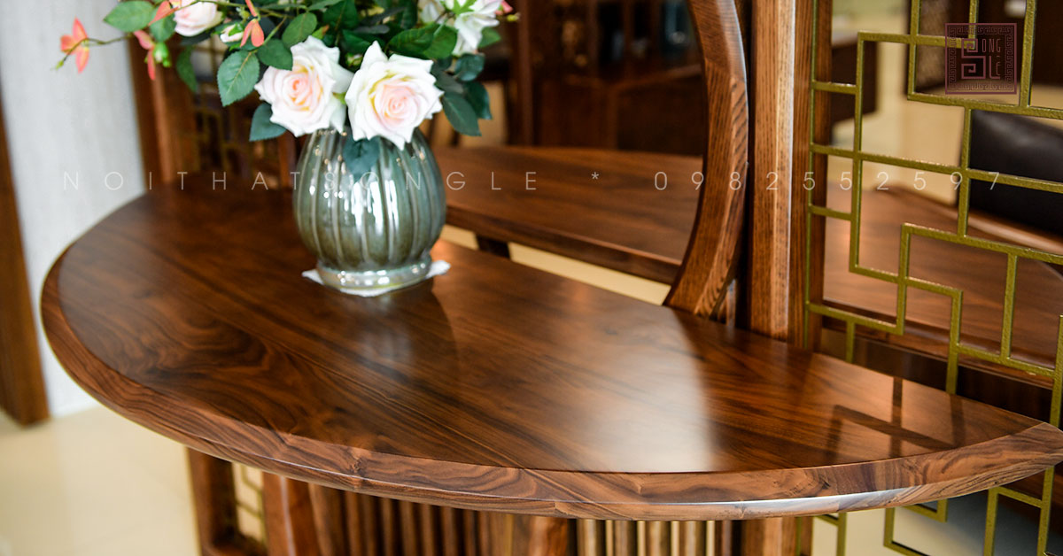 Không chỉ mang tính thẩm mỹ, kệ trang trí bán nguyệt gỗ óc chó còn có tính ứng dụng cao. Gia chủ có thể trưng bày bình hoa, sách, rượu vang, đồ lưu niệm hoặc các phụ kiện trang trí nhỏ, giúp căn phòng thêm gọn gàng và cuốn hút. Gỗ óc chó với độ bền vượt trội, chống cong vênh, mối mọt, đảm bảo sản phẩm luôn bền đẹp theo thời gian. Đây chính là lựa chọn hoàn hảo dành cho những ai yêu thích sự sang trọng, độc đáo và muốn khẳng định phong cách sống đẳng cấp trong từng chi tiết nội thất.