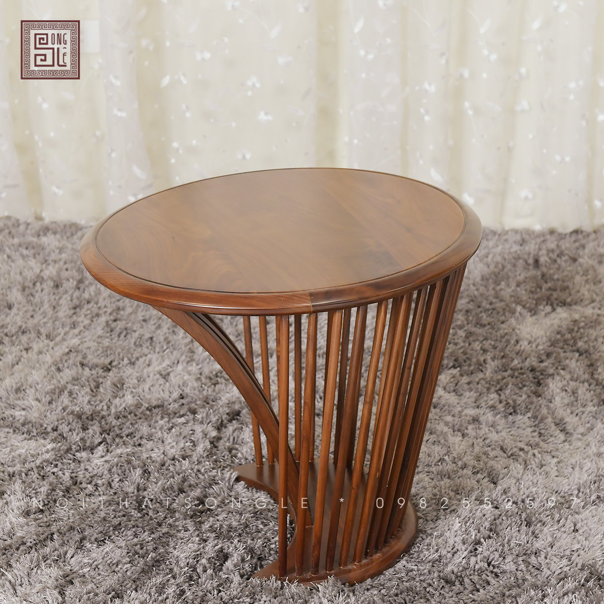 Khác với những kệ truyền thống vuông vức, kệ trang trí tròn mang đến sự mềm mại, uyển chuyển. Phần chân nan gỗ óc chó được thiết kế dạng thẳng đứng hoặc hơi uốn cong, tạo sự thanh thoát, nhẹ nhàng nhưng vẫn vô cùng chắc chắn. Kiểu dáng này vừa đảm bảo sự ổn định vừa tăng tính thẩm mỹ, khiến kệ phù hợp với nhiều không gian nội thất từ phòng khách, phòng ngủ đến phòng làm việc.