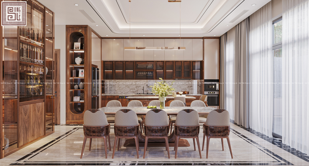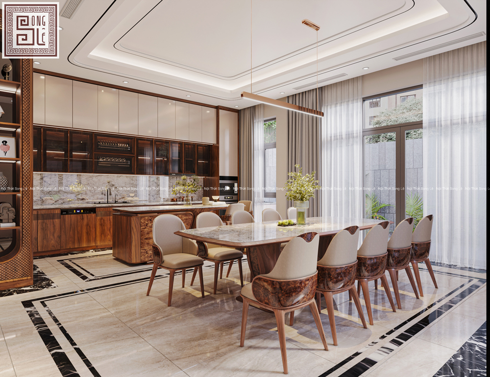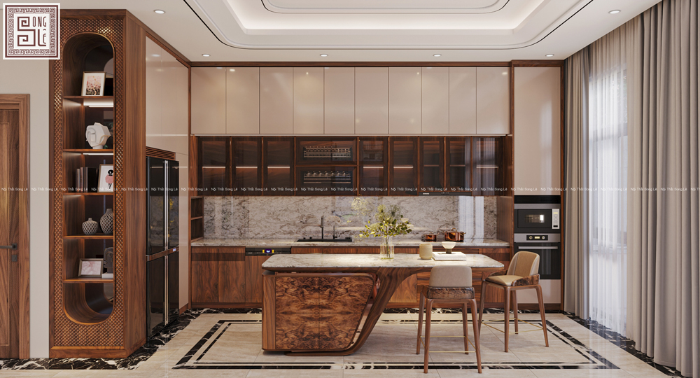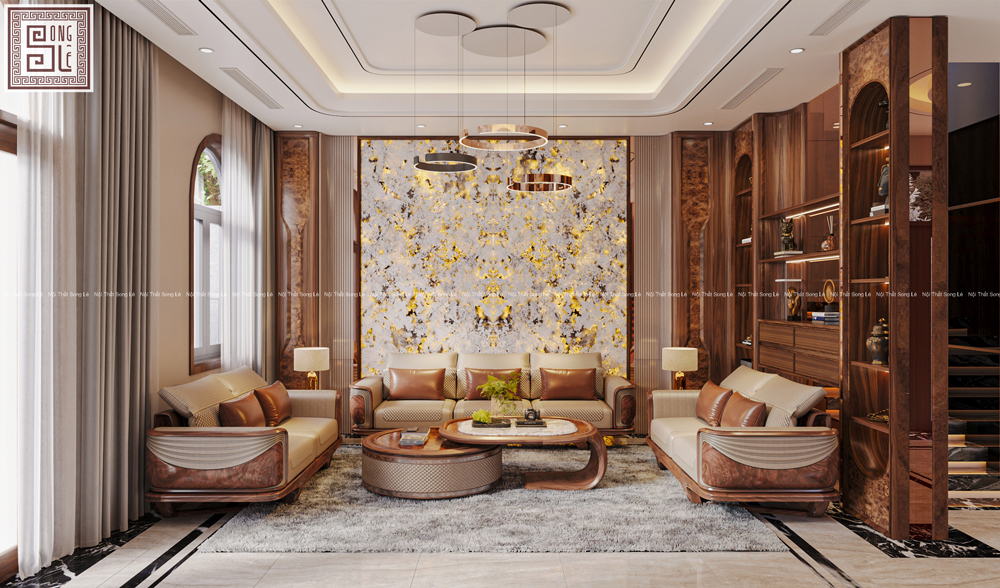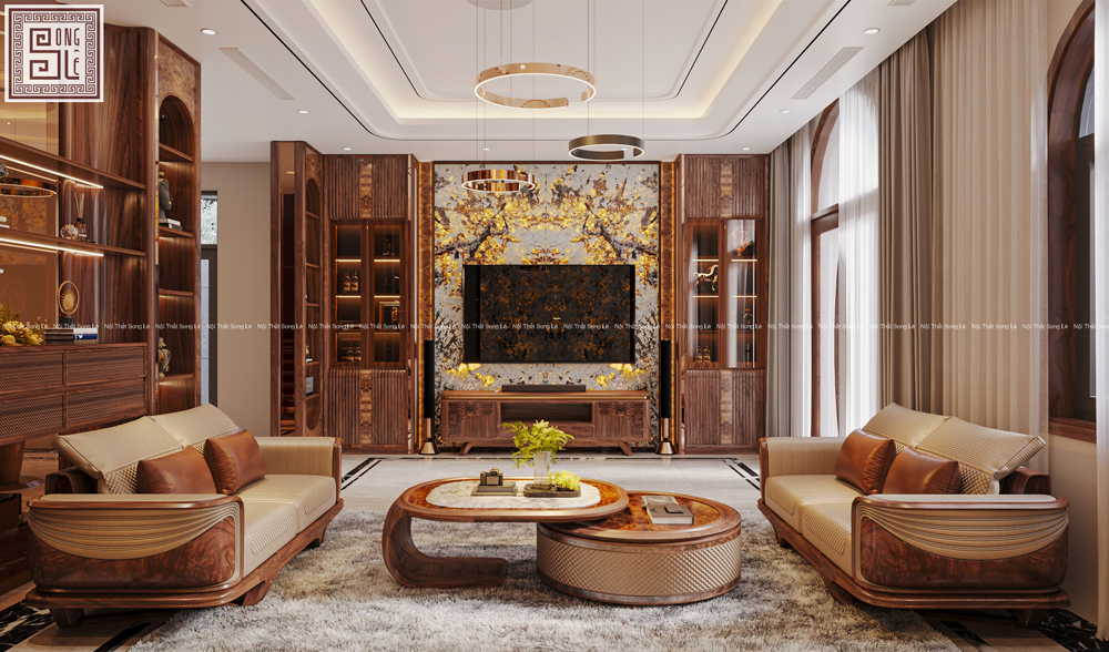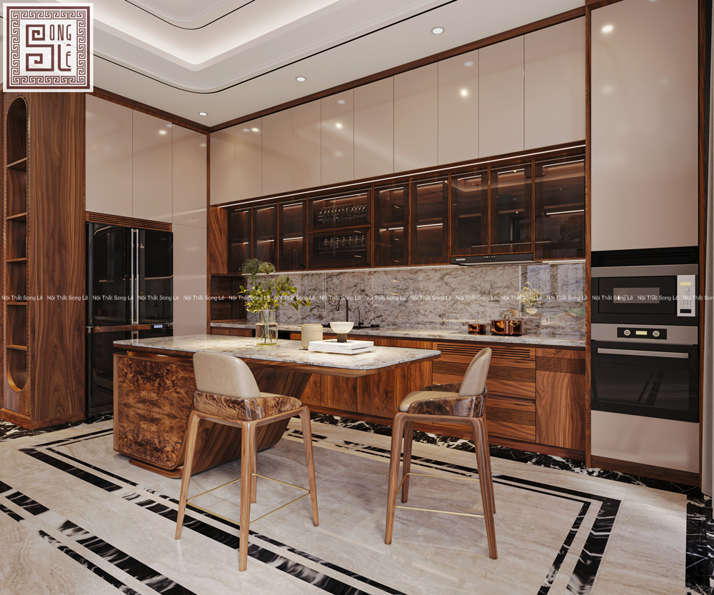 Với dự án thiết kế nội thất biệt thự gỗ óc chó anh Sơn tại Hải Phòng Nội Thất Song Lê đã lựa chọn gỗ óc chó tự nhiên làm chất liệu chủ đạo, xuyên suốt từ phòng khách đến khu bếp + ăn, tạo nên một không gian sống hài hòa và chân thực.