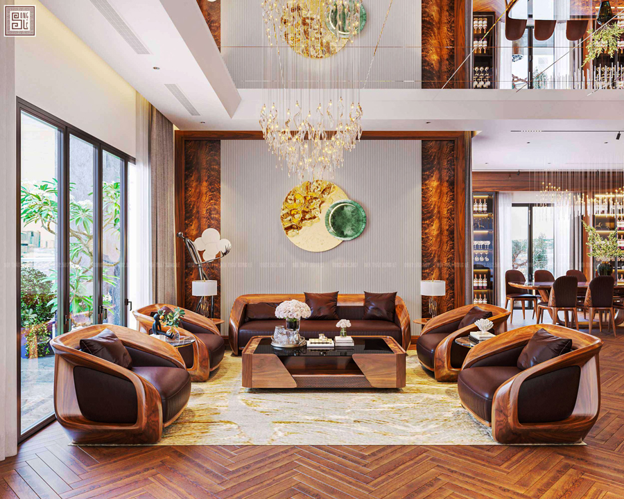 Phong cách Luxury là lựa chọn lý tưởng khi gia chủ muốn thể hiện đẳng cấp tuyệt đối. Gỗ óc chó là chất liệu chủ đạo vì vẻ sang trọng, độ bền và giá trị cao của nó.